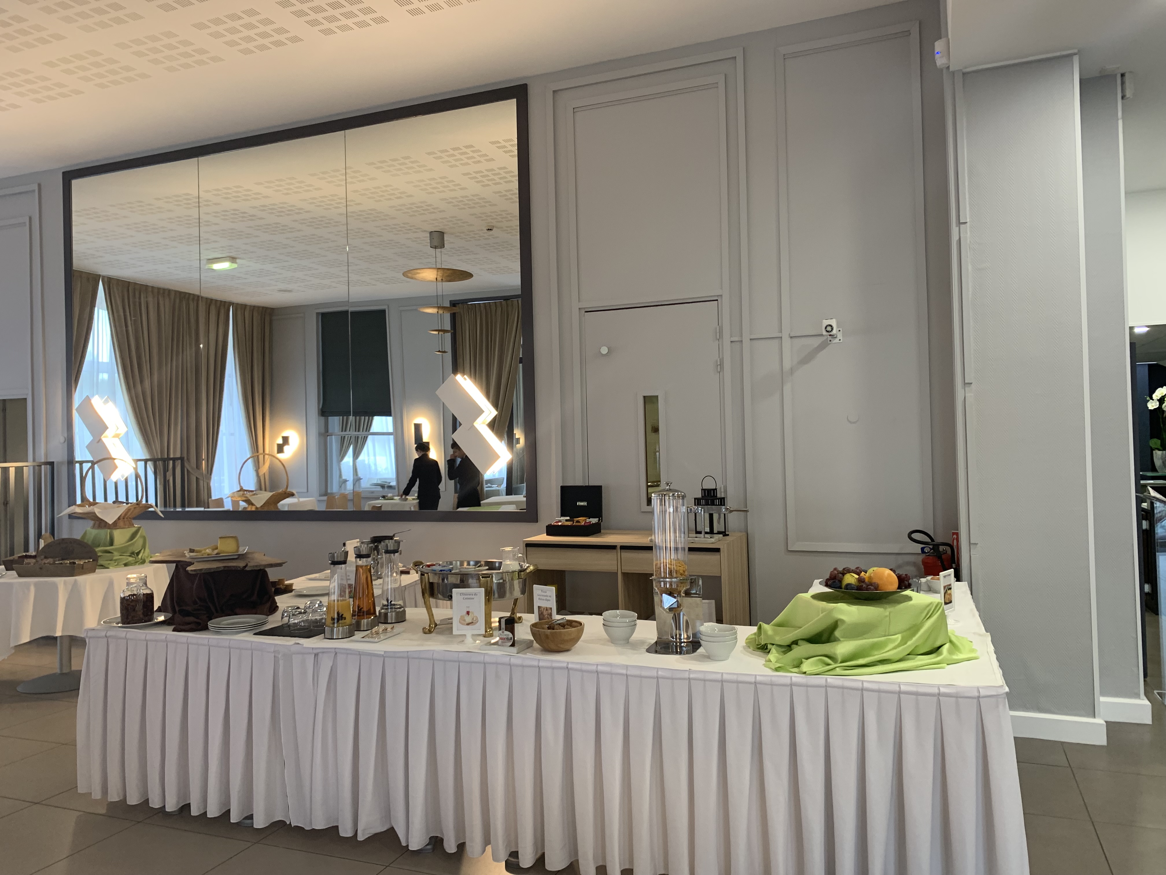 You have the choice! Hot drinks, jams and pastries, cereals and fruits in season, dairy products, but also cheese, eggs and meats.